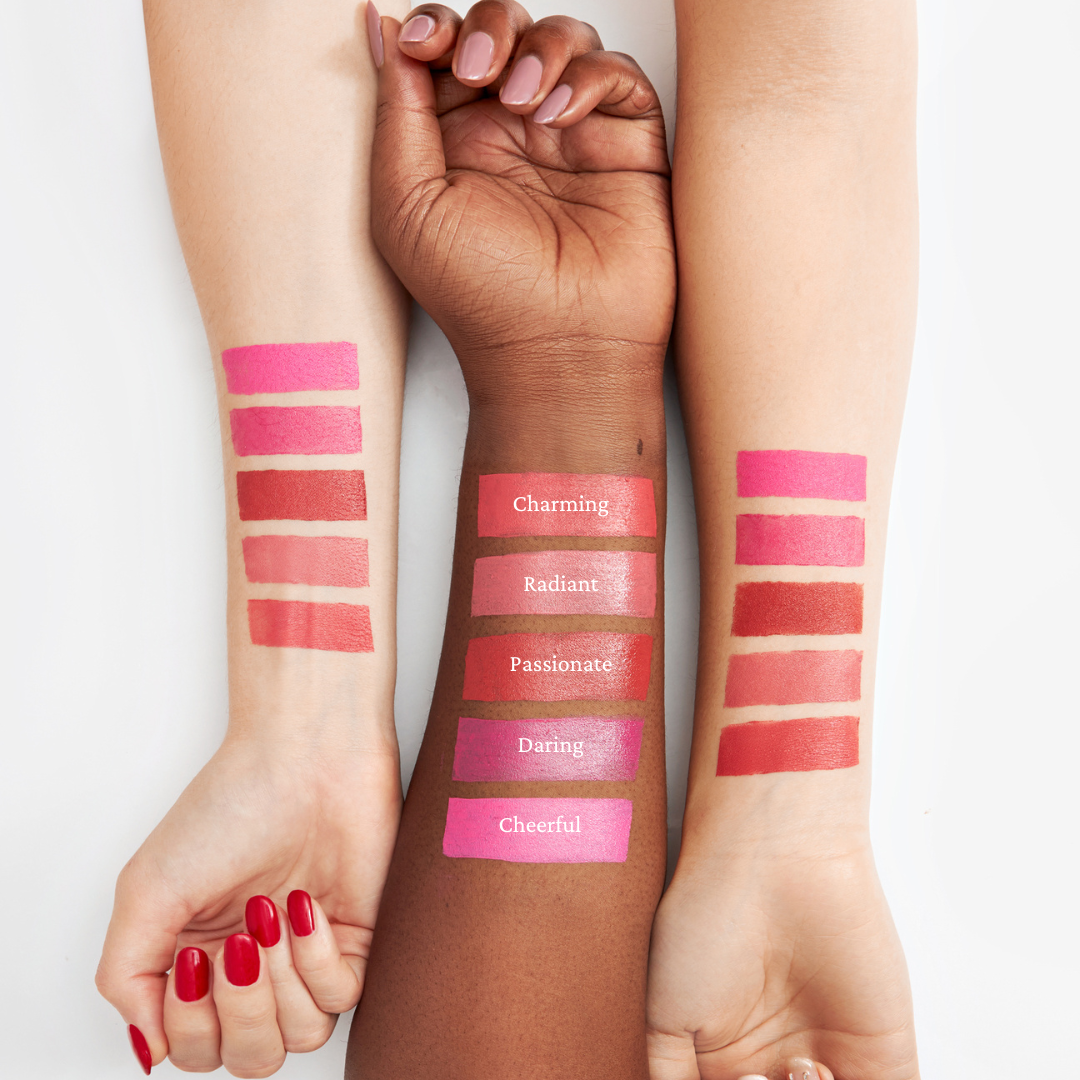 ''You Make Me Blush" is a seamless, ultra-lightweight cream blush that effortlessly blends into lips, cheeks, and eyes. Formulated with skin-loving ingredients, it features a silky-smooth cream that blends and builds like a dream. These multi-purpose cream blushes complement every skin tone, delivering a fresh finish to the complexion. Simply tap gently on cheeks and lips for a fresh, glowy look! Available in 5 shades.
